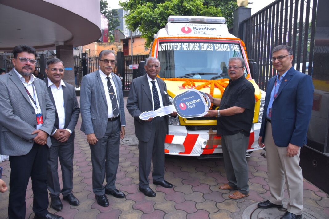 Bandhan Bank, as part of its CSR initiatives, has donated 10 fully equipped ambulances across India, including three in West Bengal, to strengthen emergency medical access and improve healthcare delivery across diverse communities. Announced during the Bank’s 10th Foundation Day celebrations, the initiative has now been implemented with the donation of ambulances. The initiative reflects the Bank’s commitment to improving the reach and responsiveness of healthcare services, ensuring that patients receive timely medical attention during emergencies. The fully equipped ambulances were donated to the Institute of Neurosciences Kolkata, The Institute of Child Health, Kolkata and Ashadeep Trust, Murshidabad.
