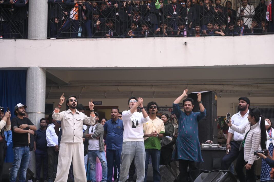 The visit emerged as a seamless blend of cinema, music and youthful energy—where storytelling met imagination, and the world of Kakababu transcended the screen to find a place in the hearts of young admirers. One of the most poignant moments of the event unfolded when the students paid a heartfelt tribute to Mr. Prosenjit Chatterjee, whose enduring creative